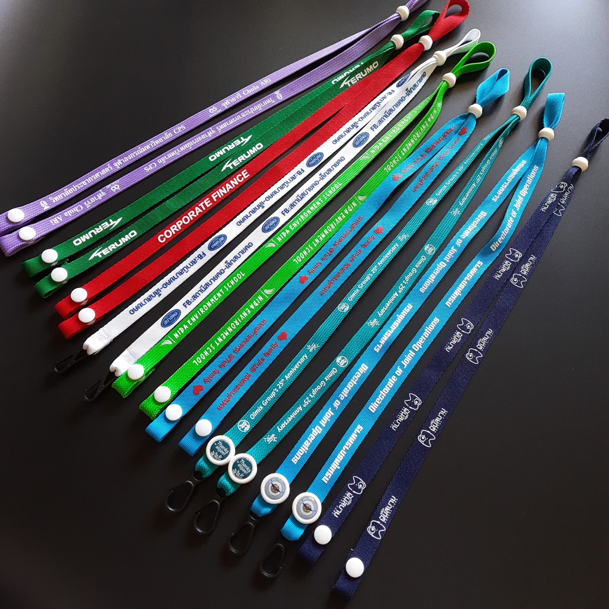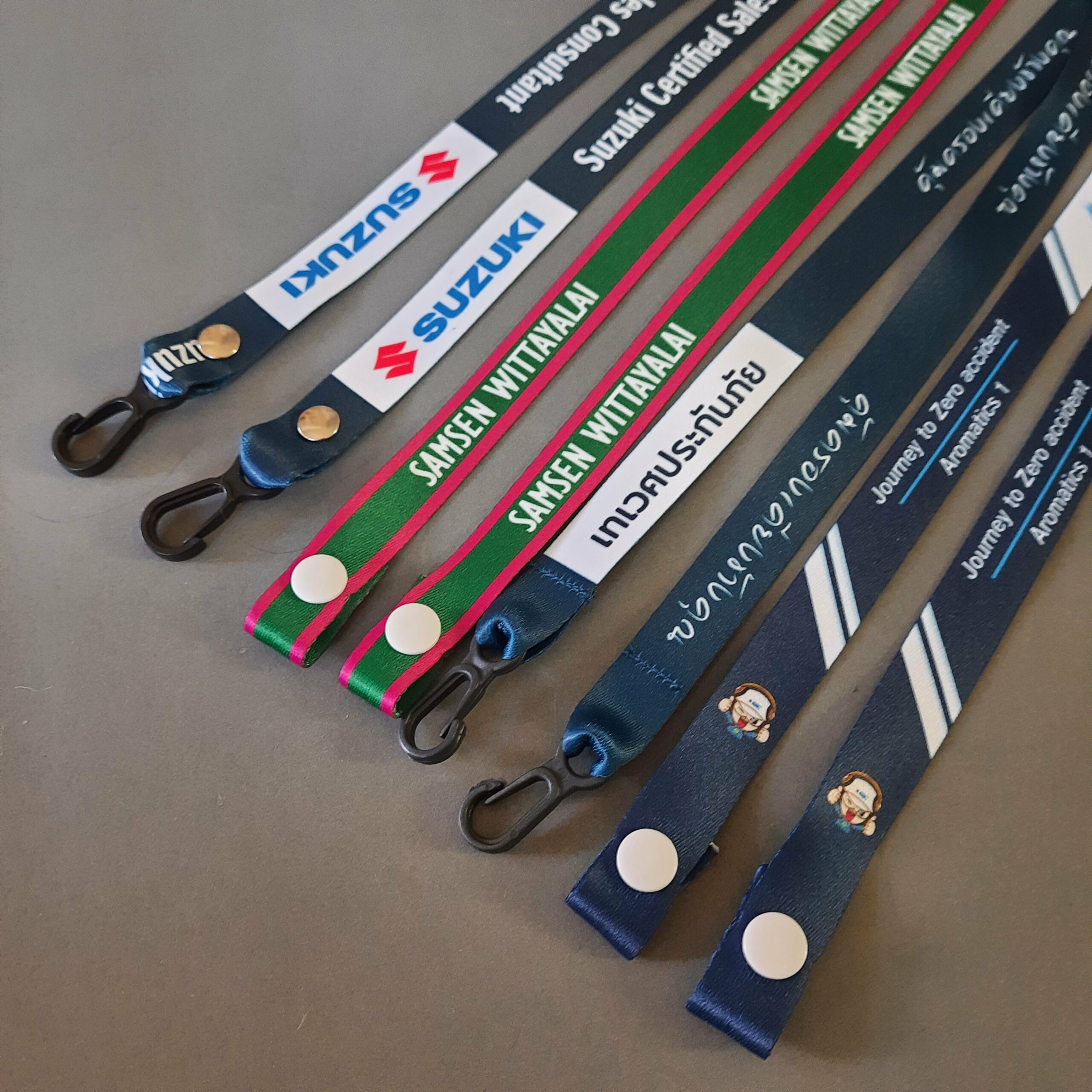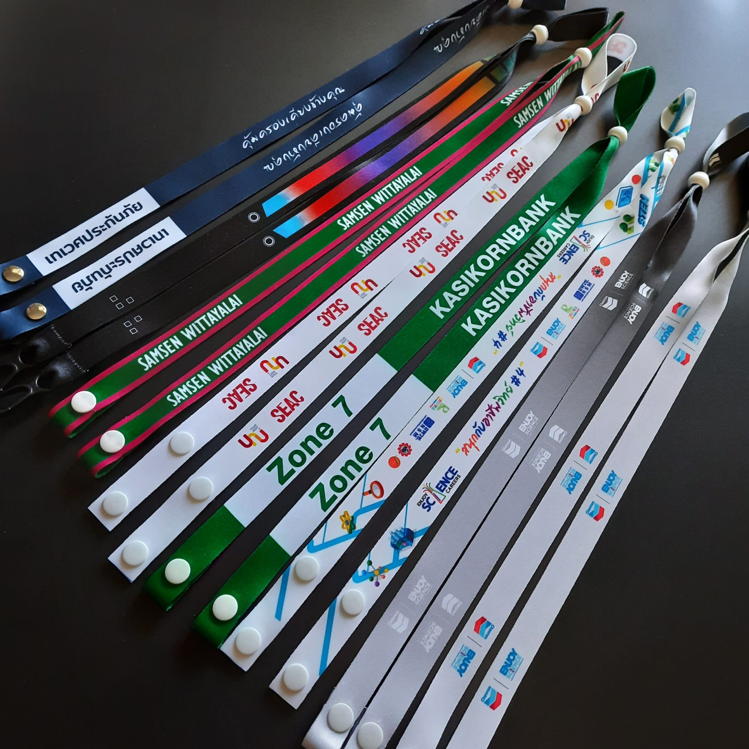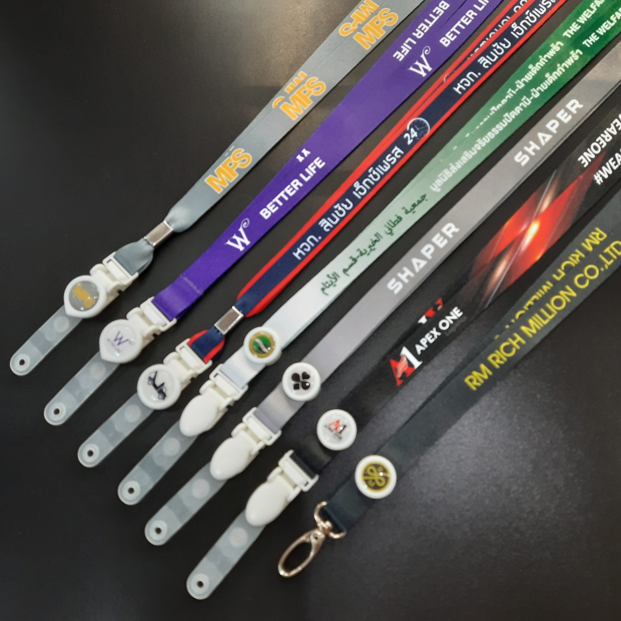 วิธีการออกแบบสายคล้อง 1.1 วิธีการออกแบบ สายคล้องคอ ซับลิเมชั่น คลิกดูตัวอย่างสายคล้องซับลิเมชั่น(Sublimation) • เลือกขนาดสายคล้อง ความกว้าง 15,20,25 มม.• เลือกออกแบบลวดลายได้ตามต้องการ ใส่สี ลวดลาย และ ข้อความได้ ไม่จำกัด ในพื้นที่ขนาดความกว้างที่เลือก 15,20,25 มม. สายคล้องยาว 900 มม. (90 ซม.)• เลือกวิธีการประกอบอะไหล่ [เย็บ ตอกหมุด ล็อคเหล็ก อื่นๆ]• เลือกอะไหล่ปลายสาย [ตะขอโลหะ คลิปยูโร ห่วงกลม อื่นๆ]• *เลือกอุปกรณ์เสริม* (หากต้องการ) [เซฟตี้ รีลิสฮุค โลโก้เรซิ่น] 1.2 วิธีการออกแบบ สายคล้องคอ สกรีนนูน คลิกดูตัวอย่างสายคล้องสกรีนนูน(Silk Screen) • เลือกขนาดสายคล้องจาก แคตตาล็อคสีสายคล้อง• เลือกออกแบบ ใส่ข้อความและลวดลายได้ 1-*2* สี ความยาวข้อความไม่เกิน 33 ซม. โดยข้อความ 2 ฝั่งจะเหมือนกันและกลับด้านเท่านั้น (ตัวอย่างตามภาพประกอบ) ในพื้นที่ขนาดความกว้างที่เลือก XX มม. สายยาว 900 มม. (90 ซม.)• เลือกวิธีการประกอบอะไหล่ [เย็บ ตอกหมุด ล็อคเหล็ก อื่นๆ]• เลือกอะไหล่ปลายสาย [ตะขอโลหะ คลิปยูโร ห่วงกลม อื่นๆ]• *เลือกอุปกรณ์เสริม* (หากต้องการ) [เซฟตี้ รีลิสฮุค โลโก้เรซิ่น] หมายเหตุ • *มีค่าใช้จ่ายเพิ่มเติม*กรุณาสอบถาม• สายคล้องโดยทั่วไป จะมีลูกปัดปรับระดับความยาวสายแถมให้ ยกเว้นสายขนาด 20,25 มม. 2.1 วิธีการออกแบบ สายคล้องแมส ซับลิเมชั่น คลิกดูตัวอย่างสายคล้องแมส • เลือกขนาดสายคล้อง ความกว้าง 15,20,25 มม.• เลือกออกแบบลวดลายได้ตามต้องการ ใส่สี ลวดลาย และ ข้อความได้ ไม่จำกัด ในพื้นที่ขนาดความกว้างที่เลือก XX มม. สายคล้องยาว 850 มม. (85 ซม.)• เลือกวิธีการประกอบอะไหล่ [เย็บ ตอกหมุด ล็อคเหล็ก อื่นๆ]• เลือกอะไหล่ปลายสาย [ตะขอโลหะ ตะขอพลาสติก กระดุม อื่นๆ]• *เลือกอุปกรณ์เสริม* (หากต้องการ) [โลโก้เรซิ่น] 2.1 วิธีการออกแบบ สายคล้องแมส สกรีนนูน คลิกดูตัวอย่างสายคล้องแมส • เลือกขนาดสายคล้องจาก แคตตาล็อคสีสายคล้อง• เลือกออกแบบ ใส่ข้อความและลวดลายได้ 1-*2* สี ความยาวข้อความไม่เกิน 33 ซม. โดยข้อความ 2 ฝั่งจะเหมือนกันและกลับด้านเท่านั้น (ตัวอย่างตามภาพประกอบ) ในพื้นที่ขนาดความกว้างที่เลือก XX มม. สายยาว 850 มม. (85 ซม.)• เลือกวิธีการประกอบอะไหล่ [เย็บ ตอกหมุด ล็อคเหล็ก อื่นๆ]• เลือกอะไหล่ปลายสาย [ตะขอโลหะ ตะขอพลาสติก กระดุม อื่นๆ]• *เลือกอุปกรณ์เสริม* (หากต้องการ) [โลโก้เรซิ่น]หมายเหตุ • *มีค่าใช้จ่ายเพิ่มเติม*กรุณาสอบถาม• สายคล้องโดยทั่วไป จะมีลูกปัดปรับระดับความยาวสายแถมให้ ยกเว้นสายขนาด 20,25 มม. 3. วิธีการออกแบบโยโย่ ติดโลโก้แบรนด์ คลิกดูตัวอย่างโยโย่ โลโก้เรซิ่น • เลือกแบบและสีของโยโย่ที่ต้องการ • เลือกโลโก้หรือข้อความที่ต้องการใส
