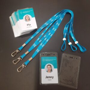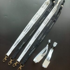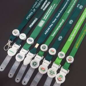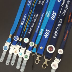 สายคล้องคอ สกรีนนูน ทำจากเนื้อผ้า “ผ้าโพลิเอสเตอร์” (Polyester) ซึ่งเป็นผ้าเส้นใยสังเคราะห์ หรือเรียกง่ายๆคือเป็นเส้นใยผ้าที่เกิดจากการผสมทางเคมีโดยใช้พลาสติก PET เป็นส่วนประกอบนั่นเองซึ่งเป็นพลาสติกชนิดเดียวกับที่ไว้ใช้ผลิตขวดน้ำ